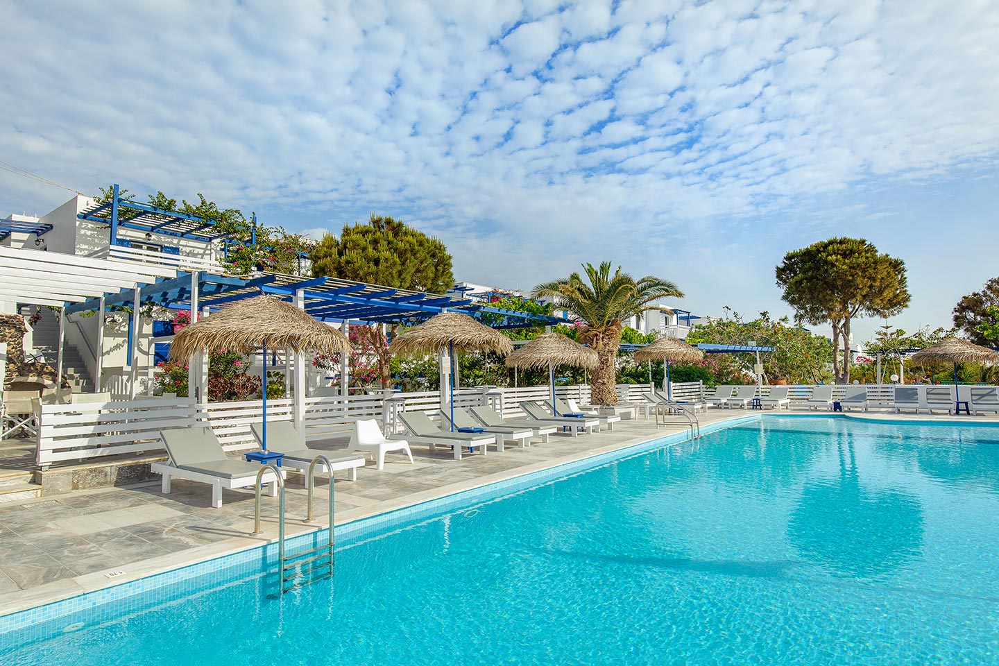 Rivari Santorini is one of the biggest modern hotel establishments in Santorini, located at the beautiful seaside village of Kamari. The hotel is built with loving care and experience. There is an ideal combination of traditional architecture on the outside and modern rooms on the inside.