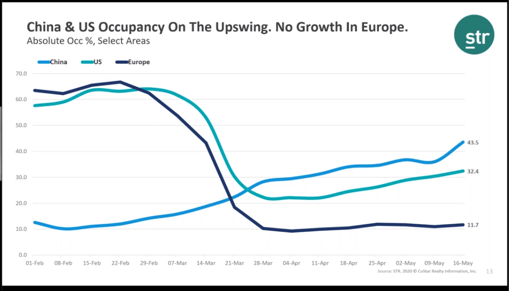 However, according to STR, Europe indicates a slower recovery pace compared to the US and China.